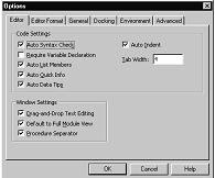 6. Periksalah setting IDE Visual Basic, dan aktifkan hal-hal berikut pada menu Tools,
