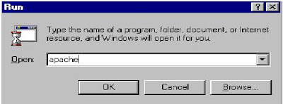 apache dari tombol start windows dan tekan tombol Run. Tulis di dalam